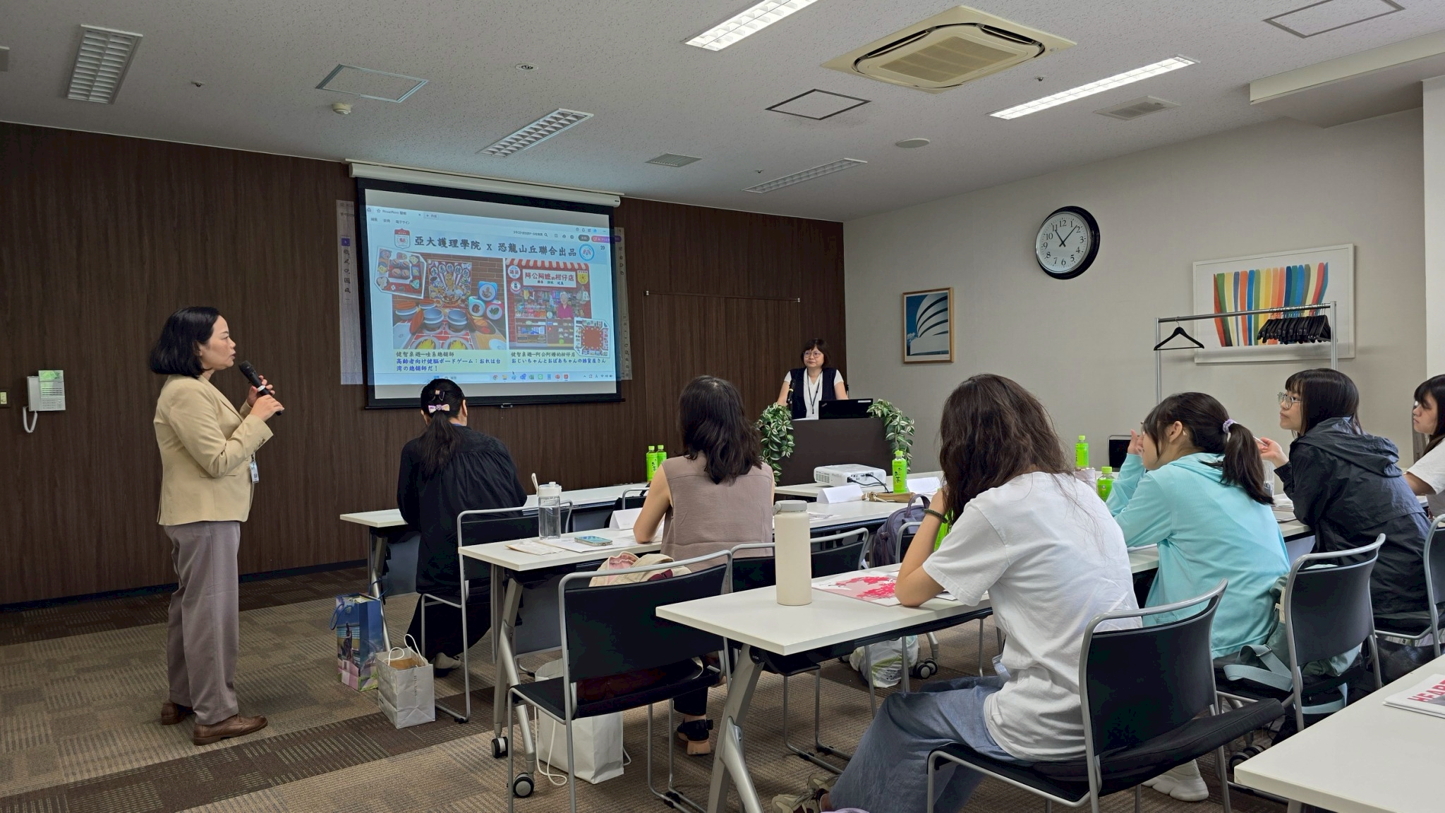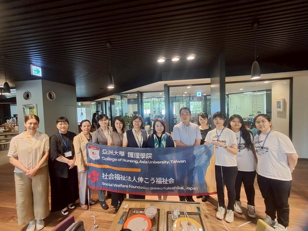 During the visit, Dean Wu, alongside Assistant Professors Xiong Nai-Huan and Lai Yu-Min, observed AU students currently participating in the Japanese internship. They attended the one-month program’s opening ceremony with President Endo Ken of Shenjiang Welfare Association, the team staff, and representatives from the NPO Japan-Taiwan Medical Welfare Cultural Exchange Support Organization, including Deputy Representative Yoko Sasai and instructors. Dean Wu was also invited to share AU Nursing College’s ten-year experience in the Ministry of Education’s University Social Responsibility (USR) Program, highlighting the implementation of “Social Prescription Empowering Communities”. She explained AU’s approach to linking academic programs with social practice fields, promoting diverse social prescription initiatives, developing digital/smart care solutions, and gradually expanding dementia care resources and inclusive community care networks in Taichung’s A-Zhao-Wu area. Shenjiang Welfare Association expressed strong interest in social prescription practice and ICT applications in long-term care, anticipating deeper collaboration and learning from AU Nursing College’s experience.