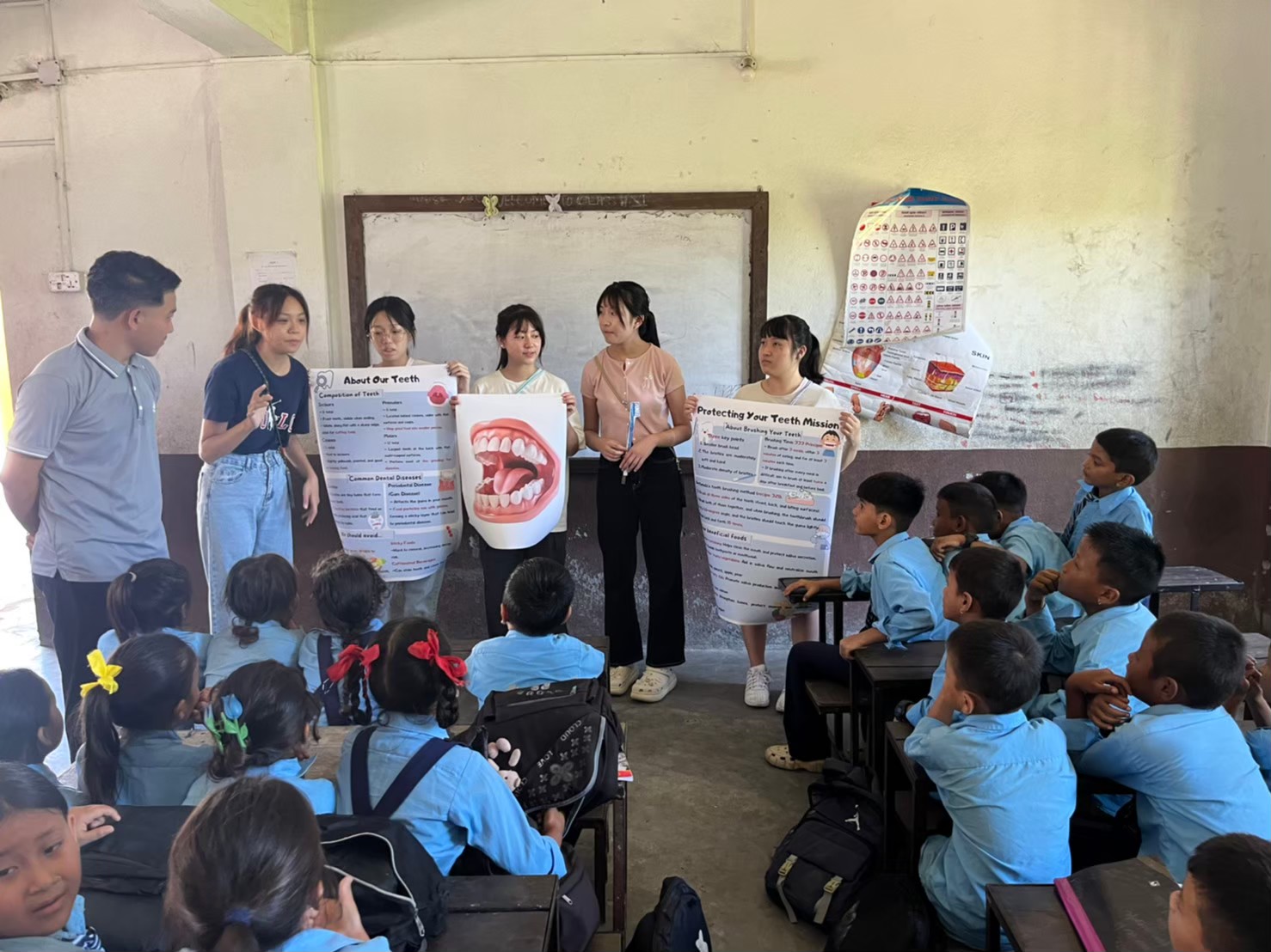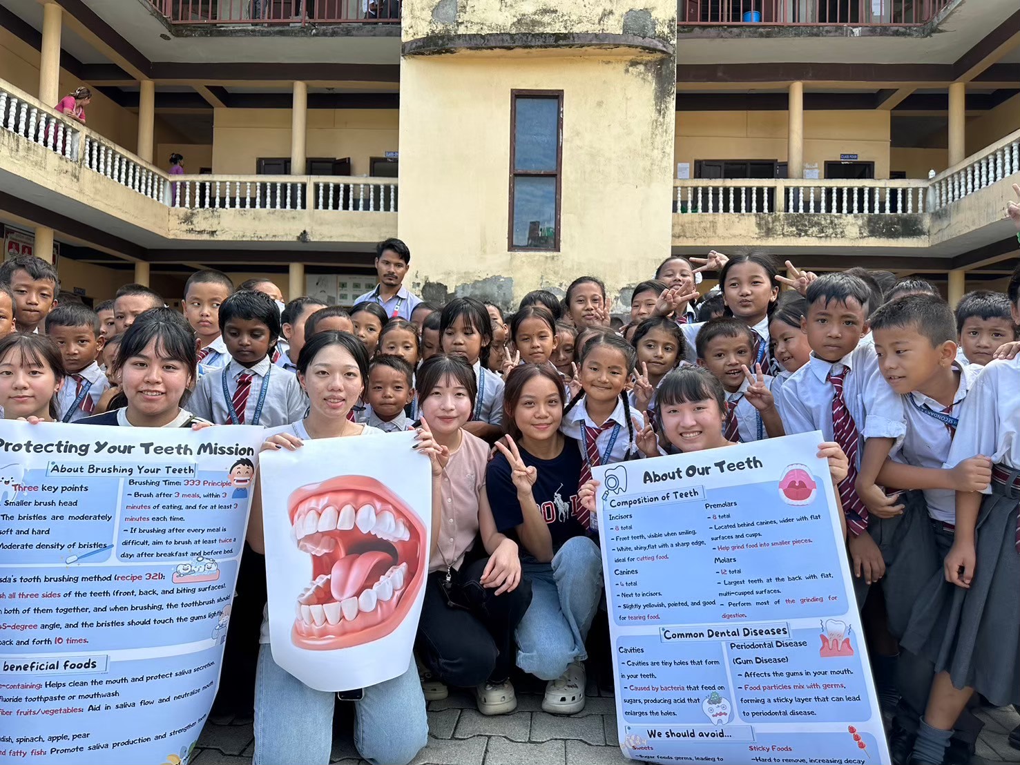 在資源匱乏的尼泊爾,許多民眾缺乏基礎醫療知識,甚至沒有接受過健康檢查。亞洲大學護理系的學生們克服語言和文化隔閡,提供專業醫療服務,協助當地醫療人員進行義診、口腔保健、孕期營養等衛教工作,並深入尼泊爾山區村落,為居民測量血糖、血壓,提供基本的健康評估,並教導當地學童正確的潔牙習慣。