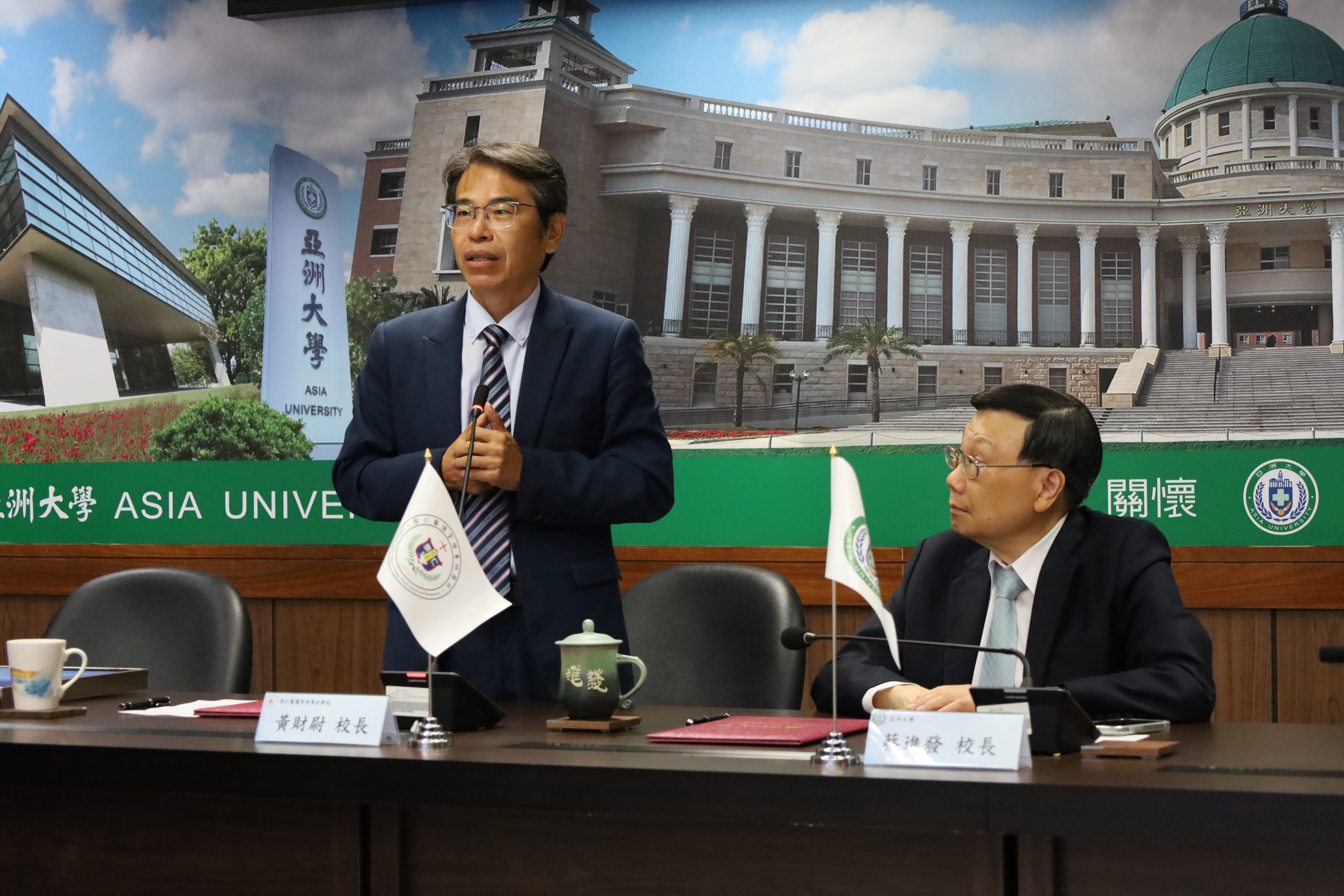 黃財尉校長指出,亞大是崇仁老師們十分景仰的大學,亞大是全台最年輕的大學,才剛歡度24周年慶,在如此短的時間內能夠有如此輝煌的成就,名列全球四大「最佳大學」排名,在私大中拔得頭籌,非常不容易;在蔡校長的領導下,在教學、研究上都讓人印象深刻,是充滿活力的大學。崇仁成立53年,從護理科起家,陸續又設立老人服務事業管理、醫療保健等科系,關注於全人健康照護扶持,透過與亞大合作,除了能提供學生升學銜接外,也能讓學生有更多交流、成長。